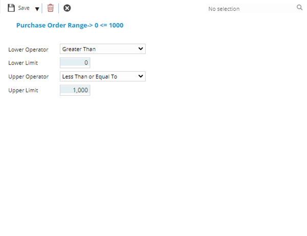 Note: Once the ranges have been created the must be assigned to User Accounts and / or Roles and Contracts if the PO Preference has not been set to "Ranges applied to all Contracts for Purchase Orders".