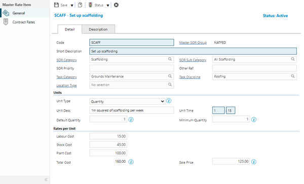| SOR Sub Category | From the drop down select the Schedule Of Rates Sub Category. Available from 5.8.1.0 The field label is now a hyperlink to open the populated record. |