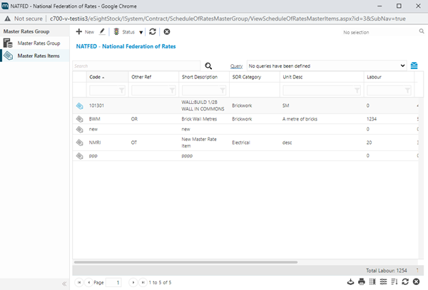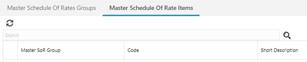 The link will open the Master Schedule Of Rates Groups grid. It is a grid view which can be searched, sorted and customised as normal.