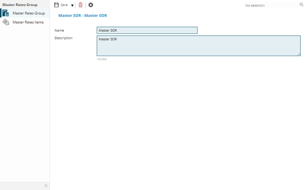 . Once the Master Schedule Of Rates Group header has been completed and saved a sub navigation will appear to allow additional entities to be created: