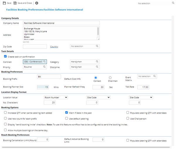 | Warn if date in the past | Check the box for a warning to appear against the booking if it has been made in the past. |
