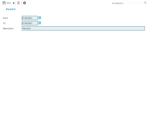 . A pop up window will appear which will allow the creation or amendment of an Accounting Period.