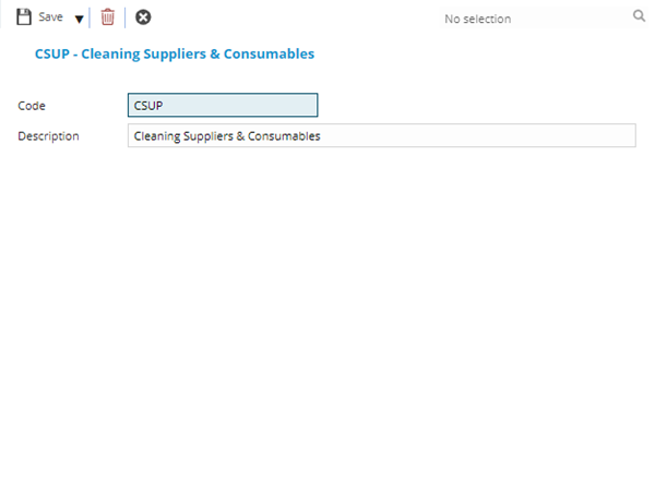 . A pop up window will appear which will allow the creation or amendment of a Supplier Category.