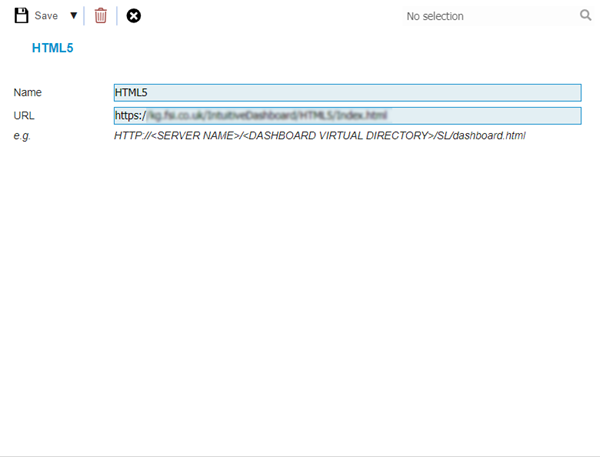. A pop up window will appear which will allow the creation or amendment of a Intuitive BI Dashboard URL.