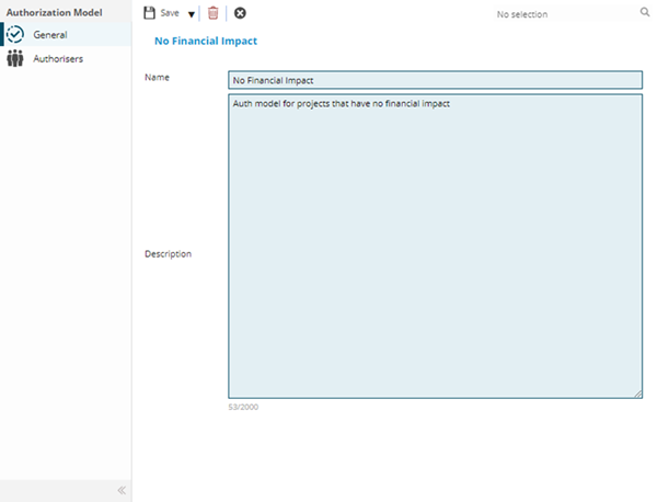 . A pop up window will appear which will allow the creation or amendment of a Authorisation Model.