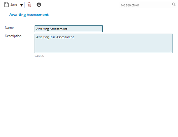 . A pop up window will appear which will allow the creation or amendment of a Project Risk Status.