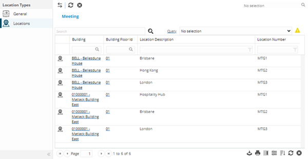 The link will open the Location Type grid. It is a grid view which can be searched, sorted and customised as normal.