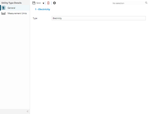 . Once the Utility Type header has been completed and saved a sub navigation will appear to allow additional entities to be assigned.