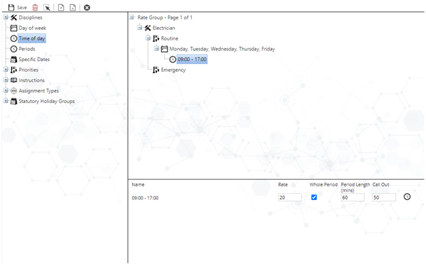 . Once the Invoicing Rate Group header has been completed and saved an additional icon will appear, click Rate Matrix