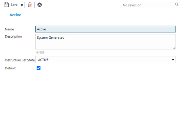 . A pop up window will appear which will allow the creation or amendment of a Instruction Set Status.