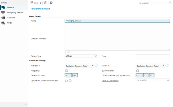 Task Event Types may also be identified as Mitigating Events for reporting and use with the ISM Module.
