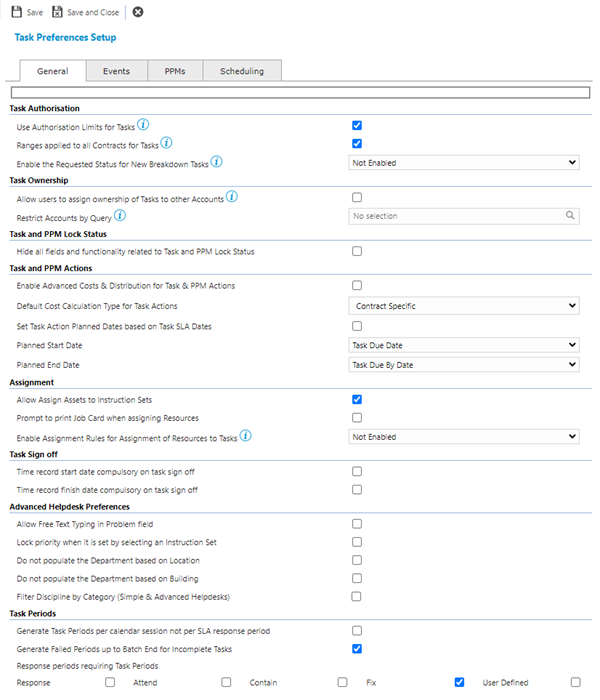 | Generate Failed Periods up to Batch End for Incomplete Tasks | If checked and subsequent "Repose periods requiring Task periods" are also checked, the target Task periods will be displayed on the Advanced Helpdesk - PMS Module Only |