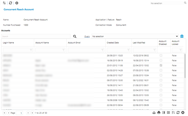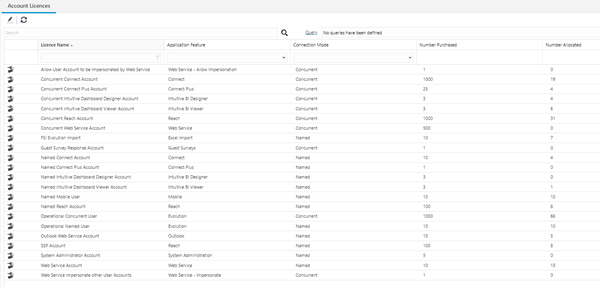 The link will open the Account License grid. It is a grid view which can be searched, sorted and customised as normal.