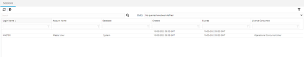 The link will open the Sessions grid. It is a grid view which can be searched, sorted and customised as normal.