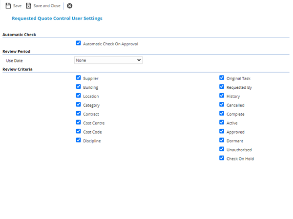 The link will open a pop up window which will allow the creation or amendment of a User Preferences / Requested Quotes.
