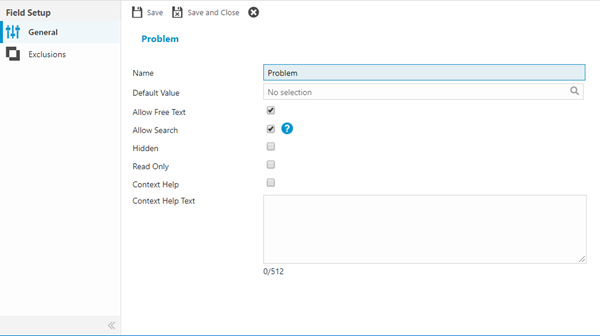 Values can be excluded from the Helpdesk, these excluded values need to be assigned via sub navigation Exclusions.