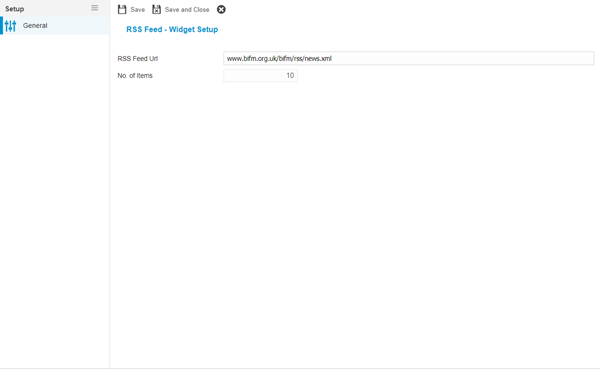 Select the Widget template : RSS Feed. Complete the fields and click Save