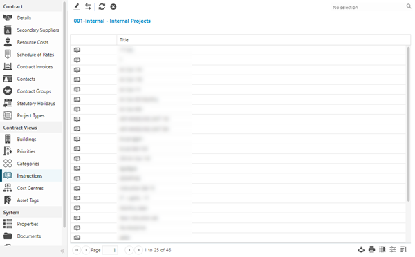 The link will open the Contract / Instruction Set grid. It is a grid view that can be customised and sorted as normal.