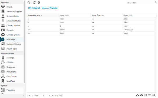 The link will open the Contracts / PO Range grid. It is a grid view that can be customised and sorted as normal.