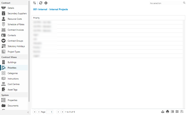 The link will open the Contract / Priorities grid. It is a grid view that can be customised and sorted as normal.