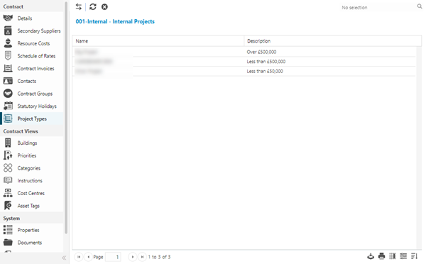 The link will open the Contracts / Project Type grid. It is a grid view that can be customised and sorted as normal.