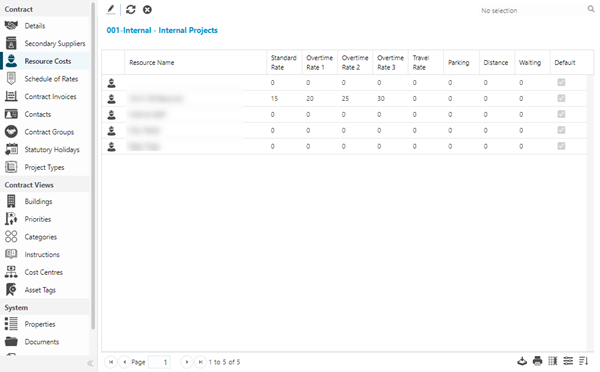 The link will open the Contract/ Resource Costs grid. It is a grid view that can be customised and sorted as normal.