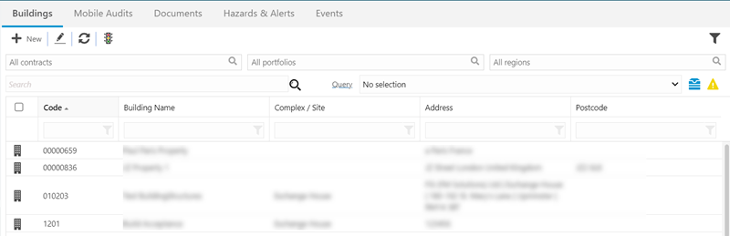 The link will open the Building Register grid. It is a grid view which can be searched, sorted and customised as normal.