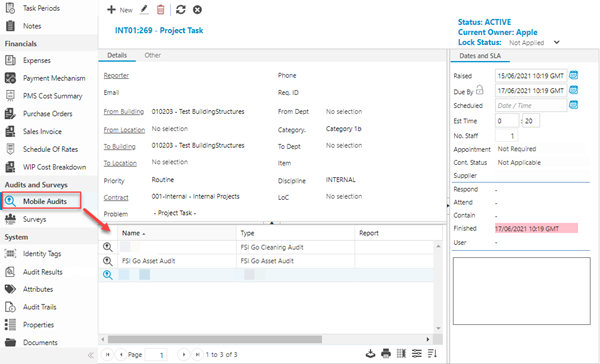 Mobile Audits are created in the Mobile Audits sub navigation of a Task. The status of the Task must ACTIVE. The purpose of the Task is to carry out a Mobile Audit on an Evolution Go mobile device.