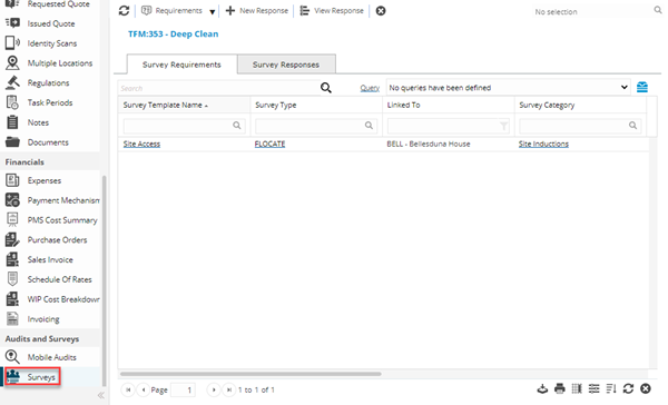 A new sub navigation added to the Advanced Helpdesk which will be used to view and manage the Survey Requirements and Survey Responses associated with an individual Task.