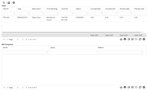 To generate WIP costs, highlight the Task and the WIP Template and click Regenerate Task Type Cost Breakdowns