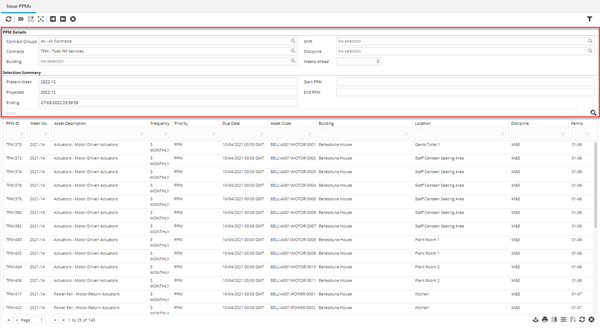 . This will build the list of PPMs, the grid can be filtered down further using the standard grid functions.