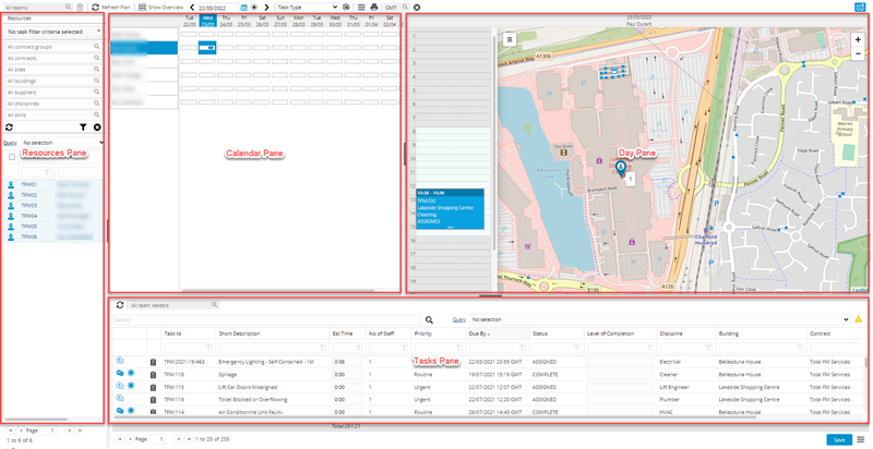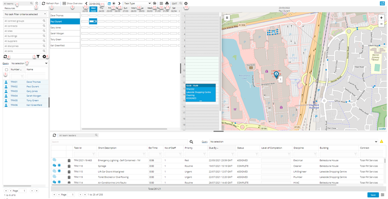 - An additional Pin should be placed in the map to show the position of any Task selected in the Task pane at the foot of the Resource Planner - coloured red: