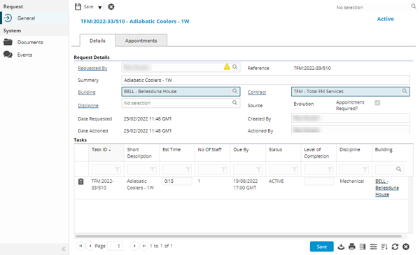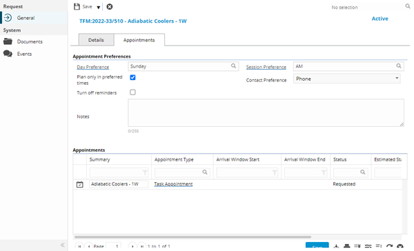 Note: On save of a new Request the system will create a new Appointment Visit linked to the current Request, if the Contract linked to the Request has Appointments enabled