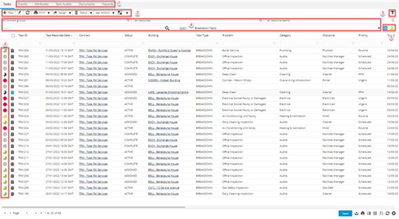 The Tasks grid, by default displays all current Tasks including Tasks that are Unauthorised, Active, Assigned and Complete.