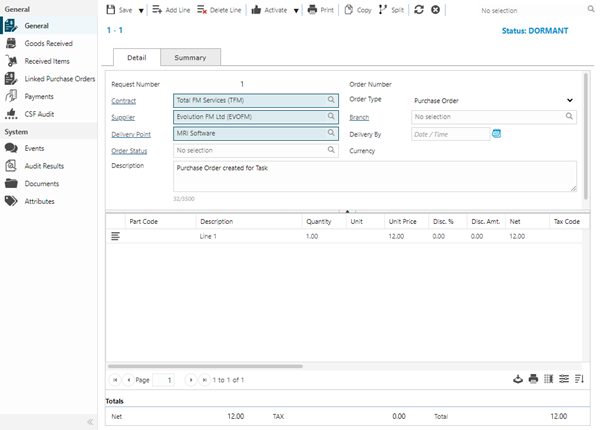 Activate Purchase Order | Authorises a Purchase Order from Dormant to Active Status. |