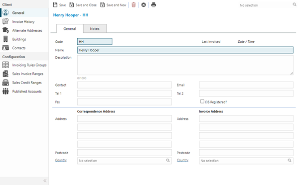 . A pop up window will appear which will allow the creation or amendment of a Client.