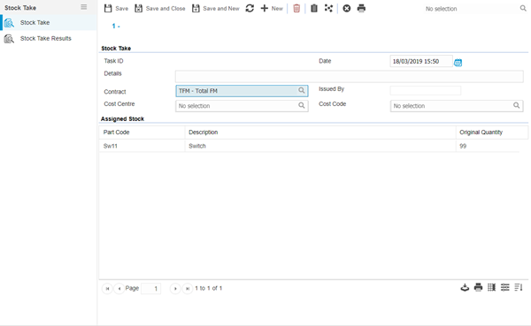 Once the Stock has been added to the Stock Take a Task can be generated for a Resource to complete.