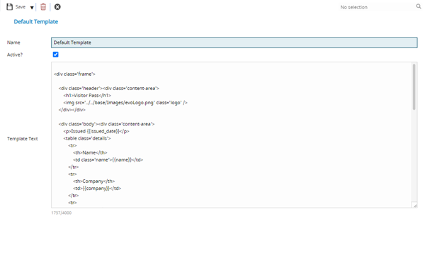 . A pop up window will appear which will allow the creation or amendment of a Visitor Badge Template.