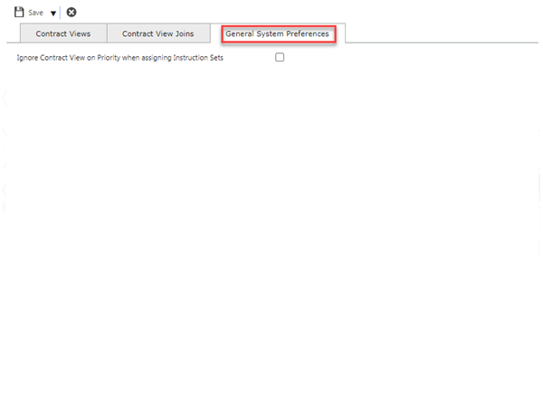 The 'Ignore Contract View on Priority when assigning Instruction Sets' checkbox has been moved here from the General Preferences page and is the only field.