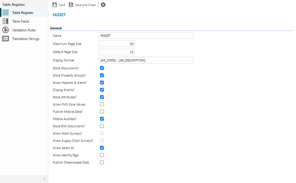 There are a wide range of functions that can be altered within the Table Register; these include; how the text in the drop down menus is displayed or allowing hazards and documents to be associated. It is also the gateway to define compulsory or unique fields that are linked with each table.