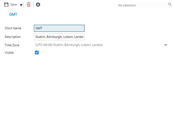 The link will open the Time Zones grid. It is a grid view which can be searched, sorted and customised as normal.