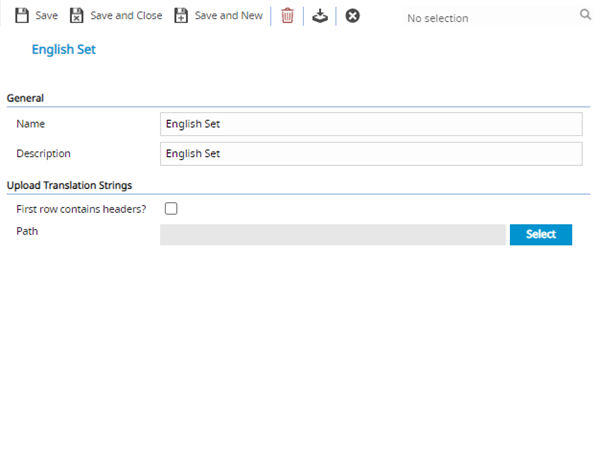 To add a new Translation Set click New