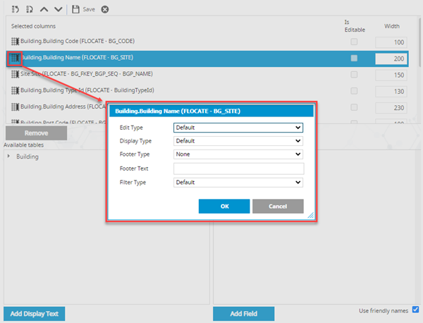 Note: Clicking Add Display Text whilst and Available Table is highlighted will add the foreign key directly to Selected Columns